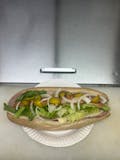 Green peppers, roasted peppers, mushrooms, broccoli, fresh tomatoes, spinach and mozzarella cheese.